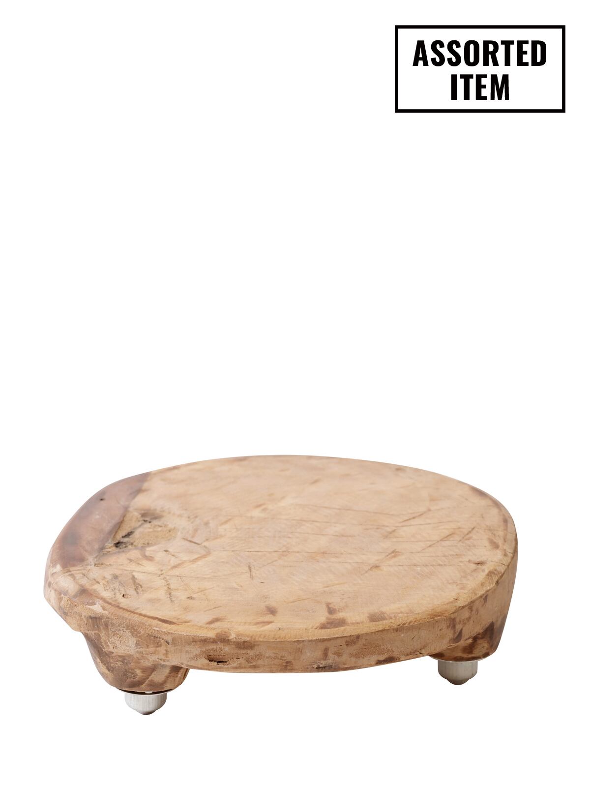かつてチャパティやナンなどの生地を捏ねるために使われていたプレートを、トローリーとして再構築した、可動式のヴィンテージ木製花台です。
